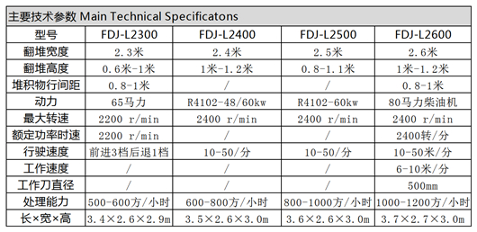 履帶式翻堆機技術參數: